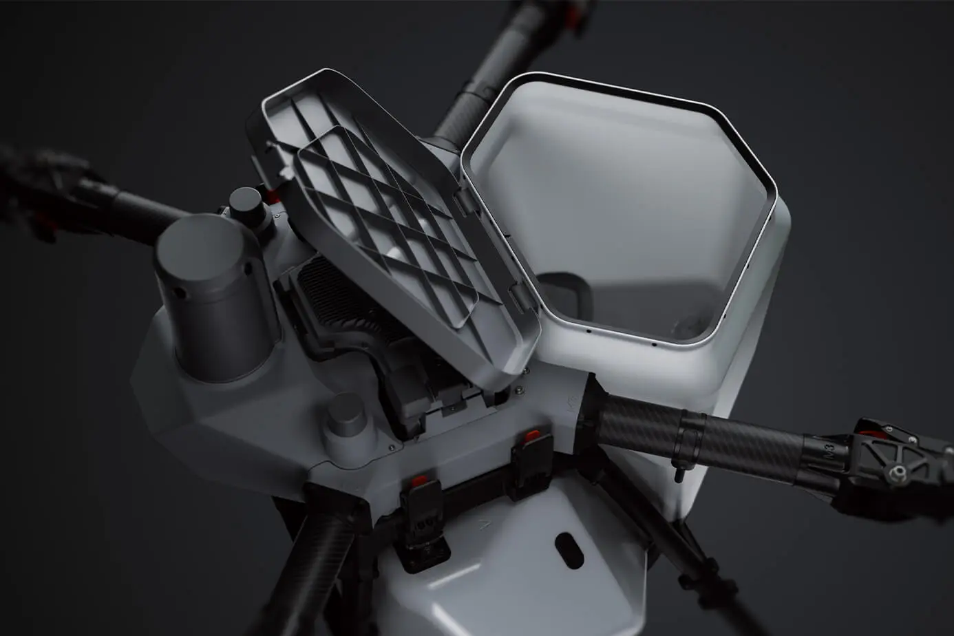 El T100 viene equipado con un tanque de 100 litros y aspersores centrífugos de doble atomización, lo que permite velocidades de vuelo más alltas, una cobertura de pulverización más amplia y una mayor eficiencia operativa para aplicaciones en campos de grandes tamaños.Los usuarios de huertos pueden agregar los aspersores nebulizadores, que mejoran las tasas de flujo y los efectos de pulverización para penetrar mejor en árboles altos con copas densas, asegurando una versatilidad y rendimiento sobresalientes en diversas tareas agrícolas.